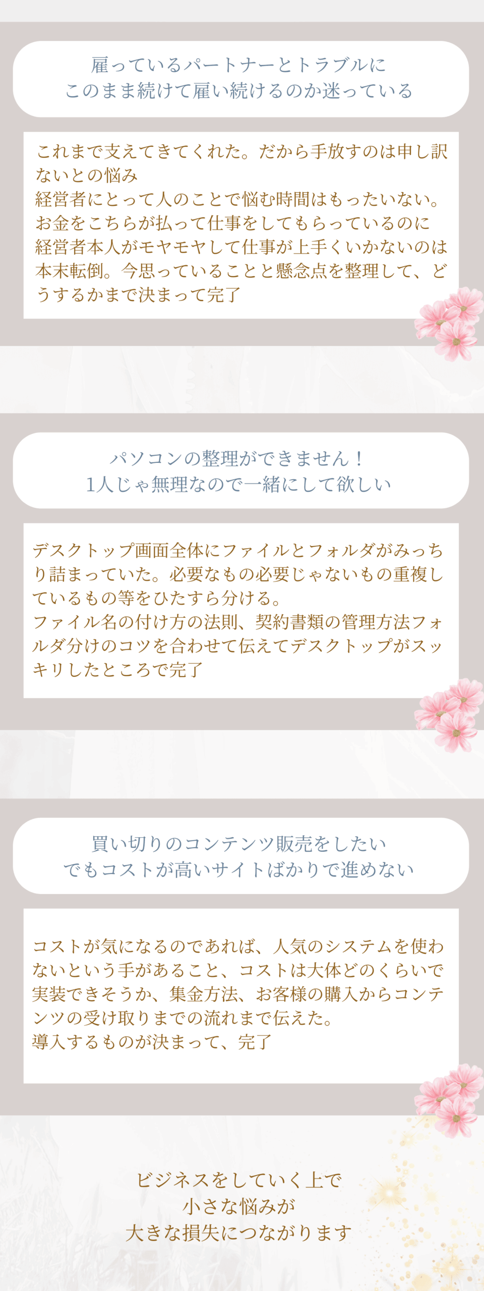 今あなたが悩んでいること・解決したい事
