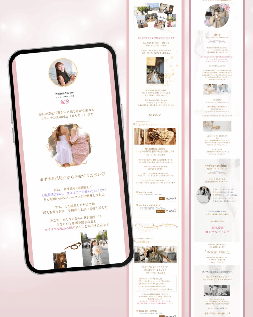 お客様が感じる、悩み・問題が、あなたならどのように解決していくのか?あなたのご経験や強み、こだわりを尊重しながらお客様に伝えるLPをテキスト・構成・デザインまでお任せいただけます。